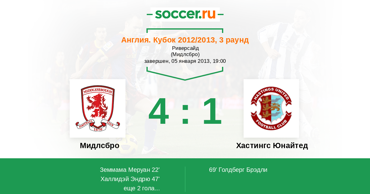 Протокол матча Мидлсбро против Хастингс Юнайтед