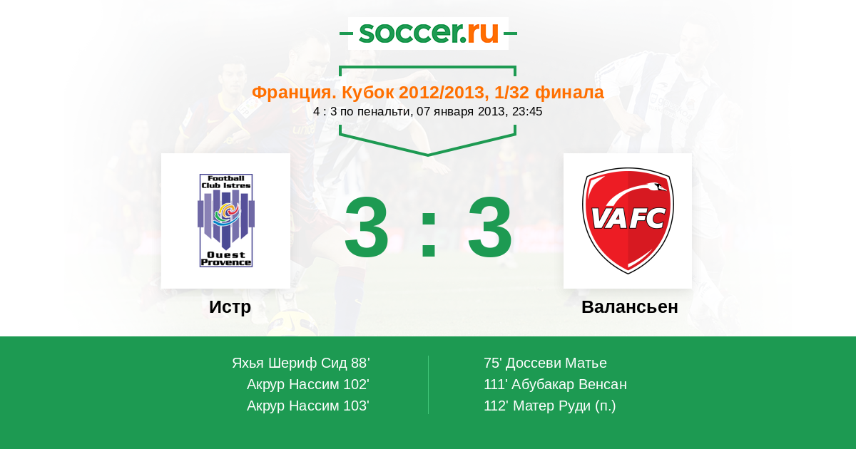 Протокол матча Истр против Валансьен