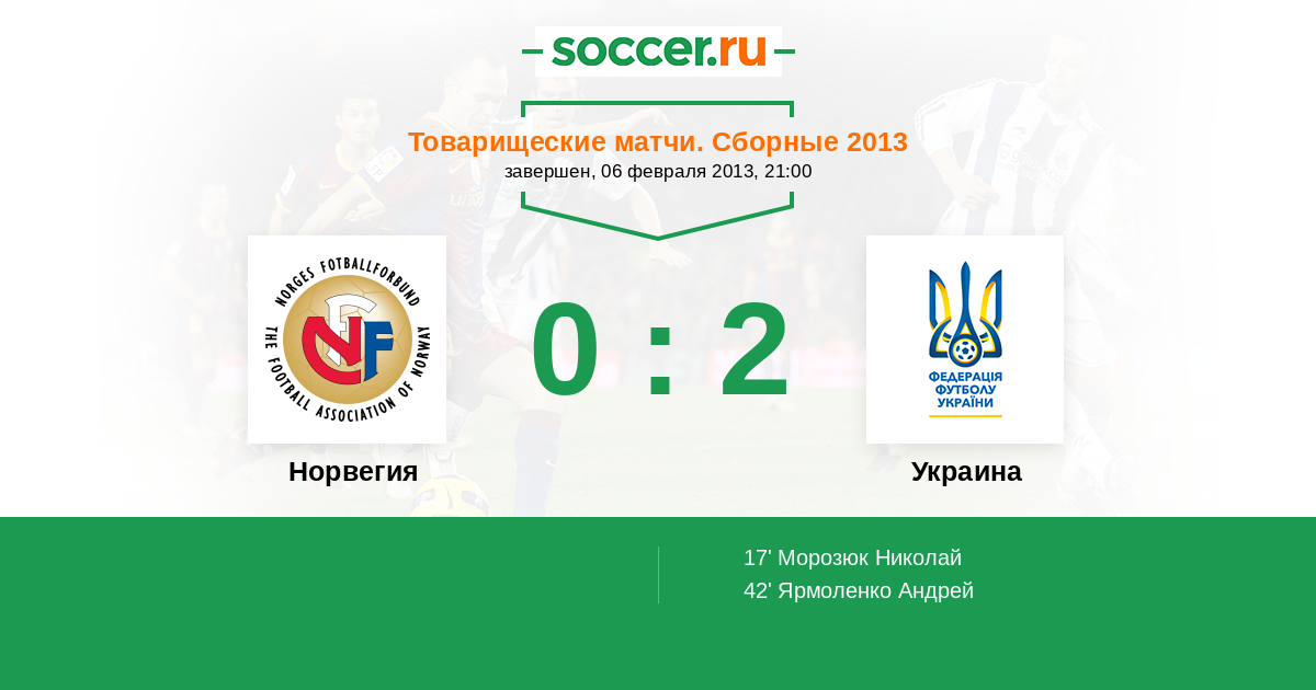 Протокол матча Норвегия против Украина