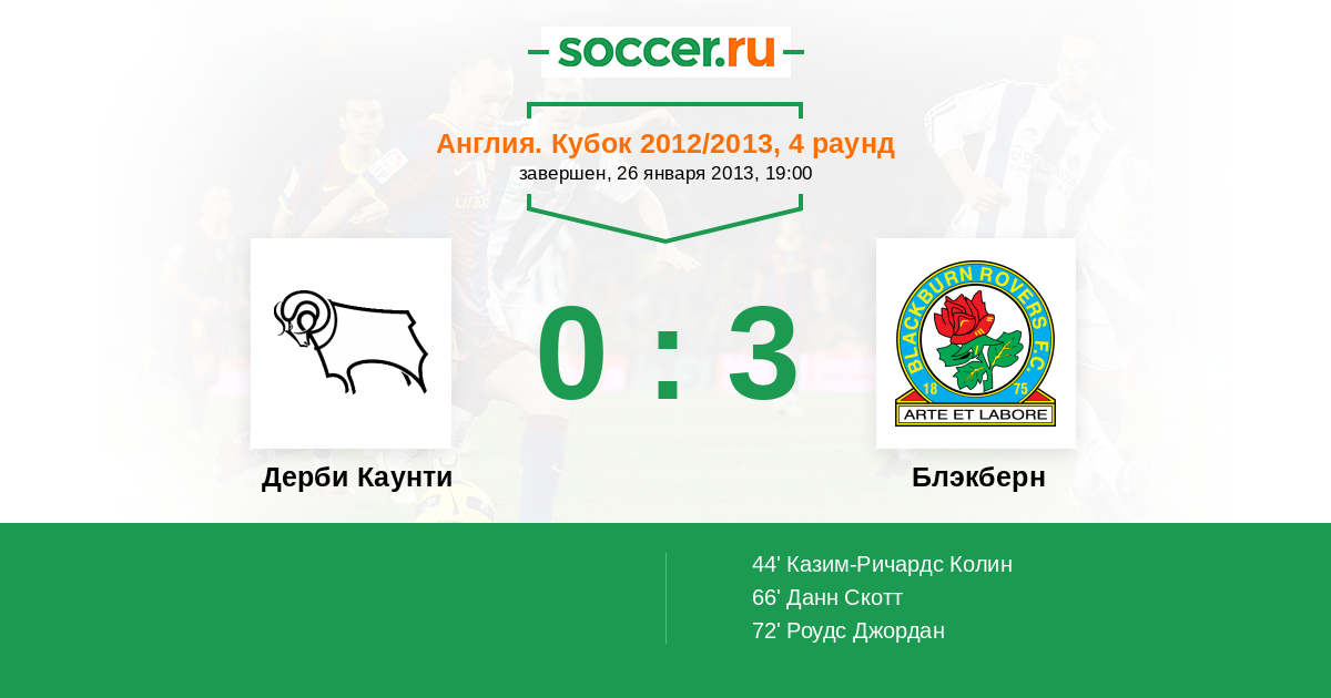 Протокол матча Дерби Каунти против Блэкберн