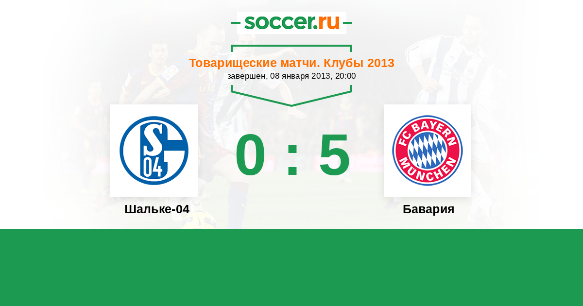 Товарищеские матчи. Клубы 01.08.2010 Шальке-04 Логотип футбольный клуб Шальке-04 (Гельзенкирхен) 3:1 Логотип футбольный клуб Бавария (Мюнхен) Бавария