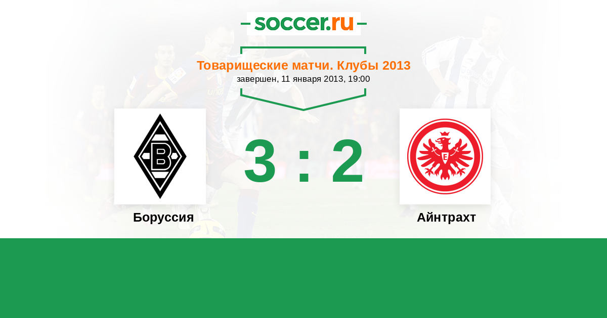 Германия. Бундеслига 01.03.2013 Айнтрахт Логотип футбольный клуб Айнтрахт (Франкфурт) 0:1 Логотип футбольный клуб Боруссия (Менхенгладбах) Боруссия