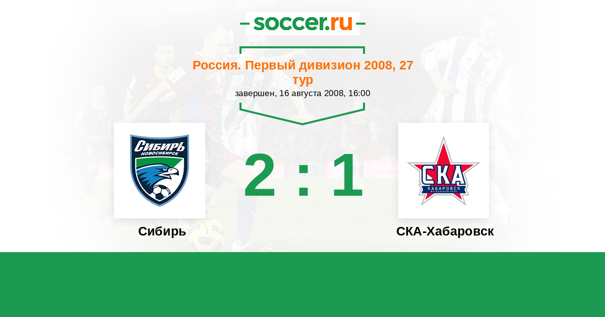 Россия. Первая лига 26.04.2008 СКА-Энергия Логотип футбольный клуб СКА-Энергия (Хабаровск) 1:1 Логотип футбольный клуб Сибирь (Новосибирск) Сибирь