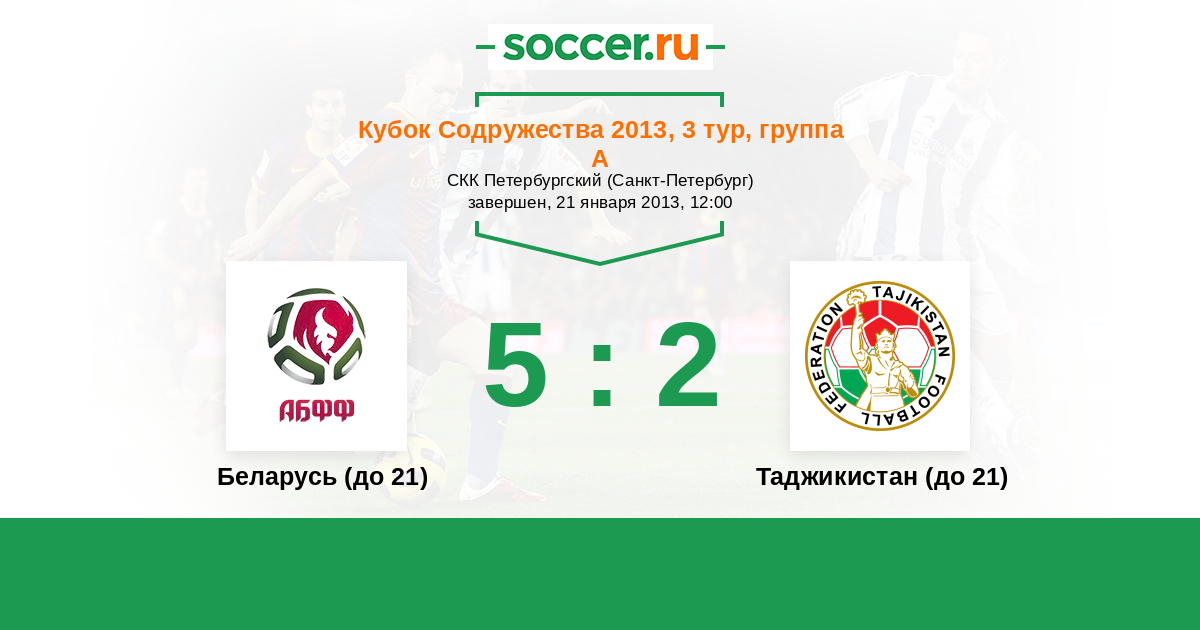 Кубок Содружества 21.01.2012 Беларусь (до 21) Логотип Беларусь (до 21) 2:0 Логотип Таджикистан (до 21) Таджикистан (до 21)