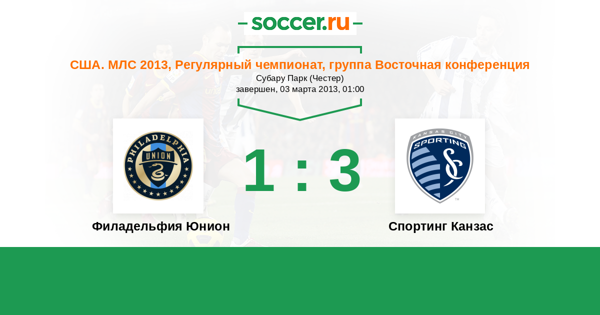 США. МЛС 28.09.2013 Спортинг Канзас Логотип футбольный клуб Спортинг Канзас (Канзас-Сити) 0:1 Логотип футбольный клуб Филадельфия Юнион Филадельфия Юнион