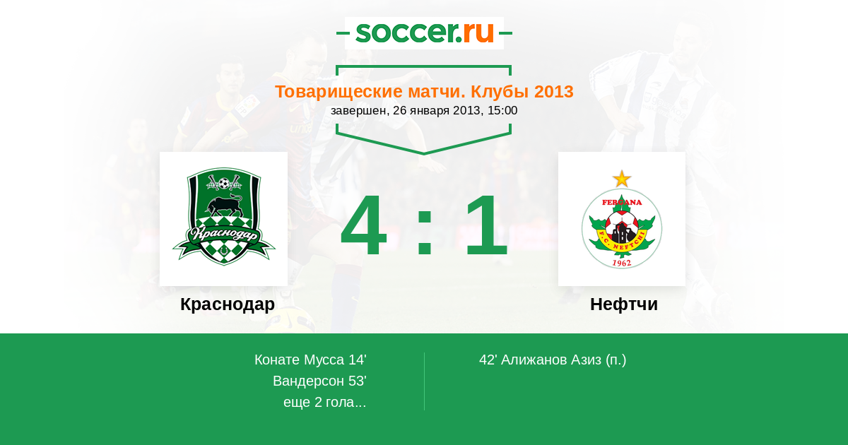 Протокол матча Краснодар против Нефтчи