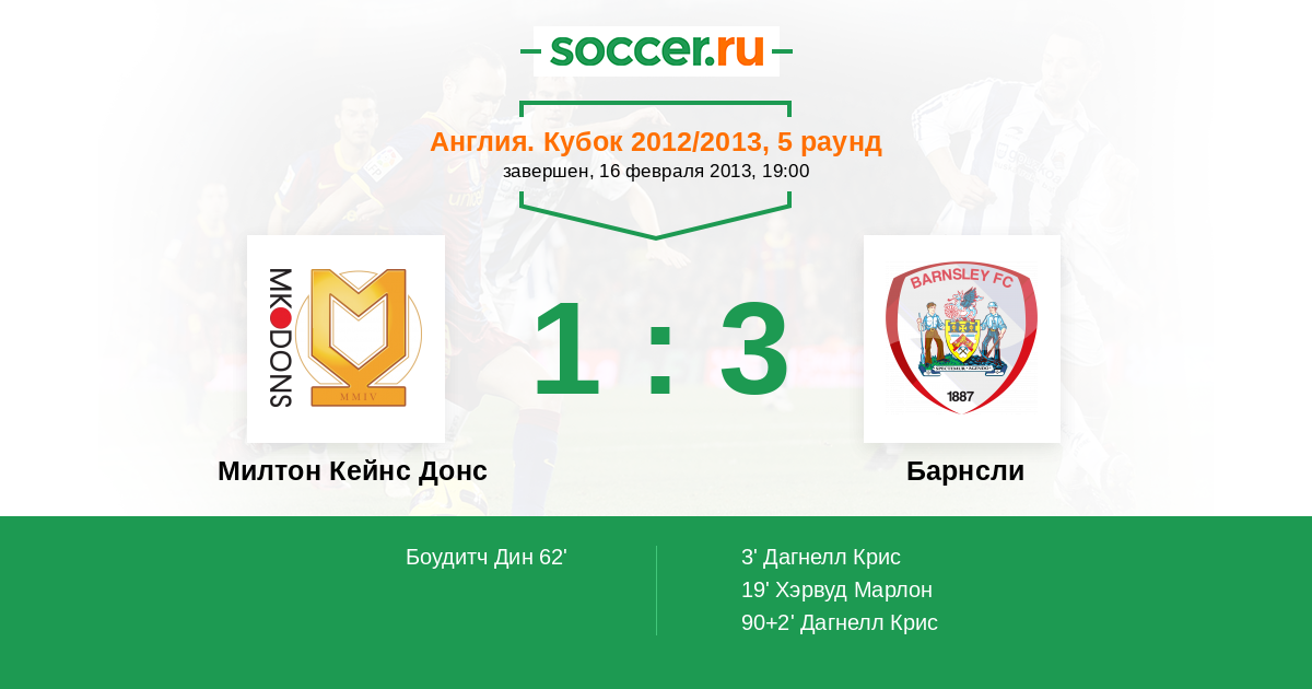 Протокол матча Милтон Кейнс Донс против Барнсли
