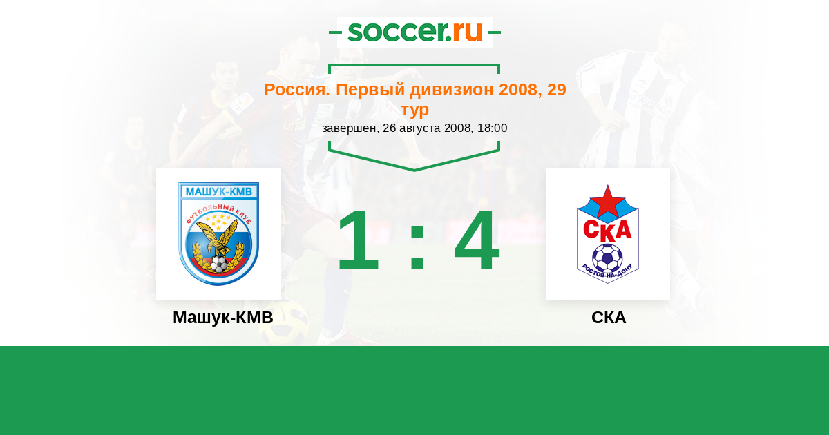 Россия. Первая лига 24.10.2008 Машук-КМВ Логотип футбольный клуб Машук-КМВ (Пятигорск) 1:3 Логотип футбольный клуб СКА (Ростов-на-Дону) СКА