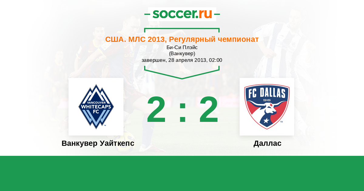 США. МЛС 21.04.2013 Даллас Логотип футбольный клуб Даллас 2:0 Логотип футбольный клуб Ванкувер Уайткепс Ванкувер Уайткепс