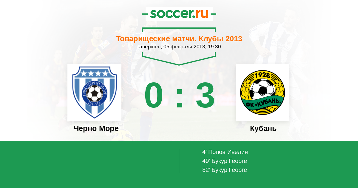 Протокол матча Черно Море против Кубань