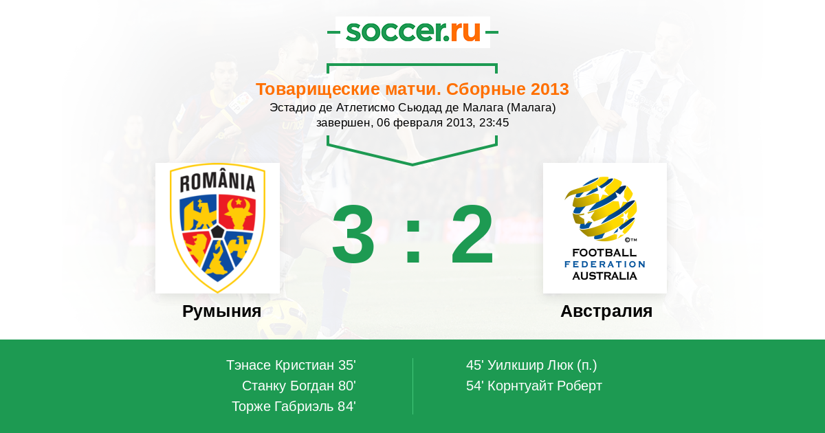 Протокол матча Румыния против Австралия