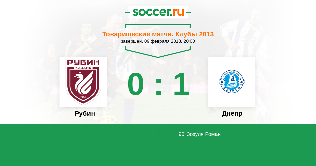 Протокол матча Рубин против Днепр