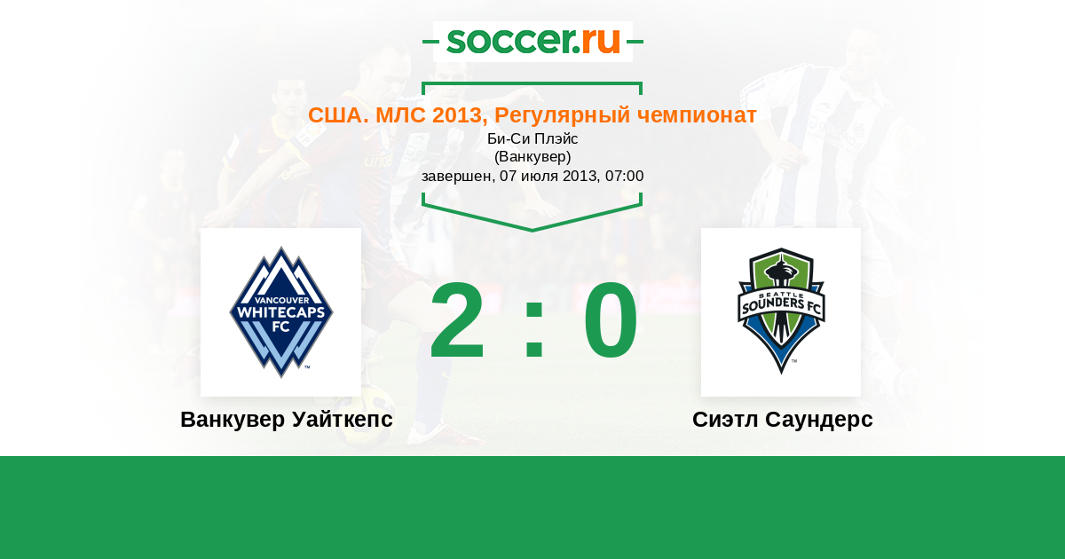 США. МЛС 06.07.2014 Ванкувер Уайткепс Логотип футбольный клуб Ванкувер Уайткепс 1:0 Логотип футбольный клуб Сиэтл Саундерс Сиэтл Саундерс