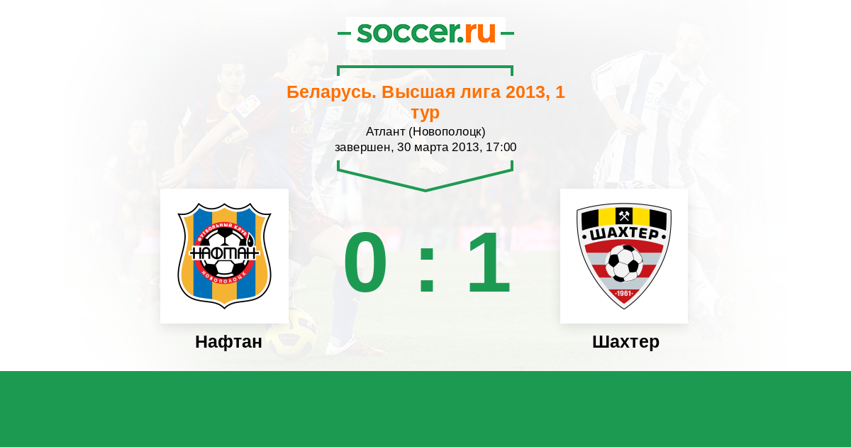 Беларусь. Высшая лига 15.06.2013 Шахтер Логотип футбольный клуб Шахтер (Солигорск) 2:0 Логотип футбольный клуб Нафтан (Новополоцк) Нафтан