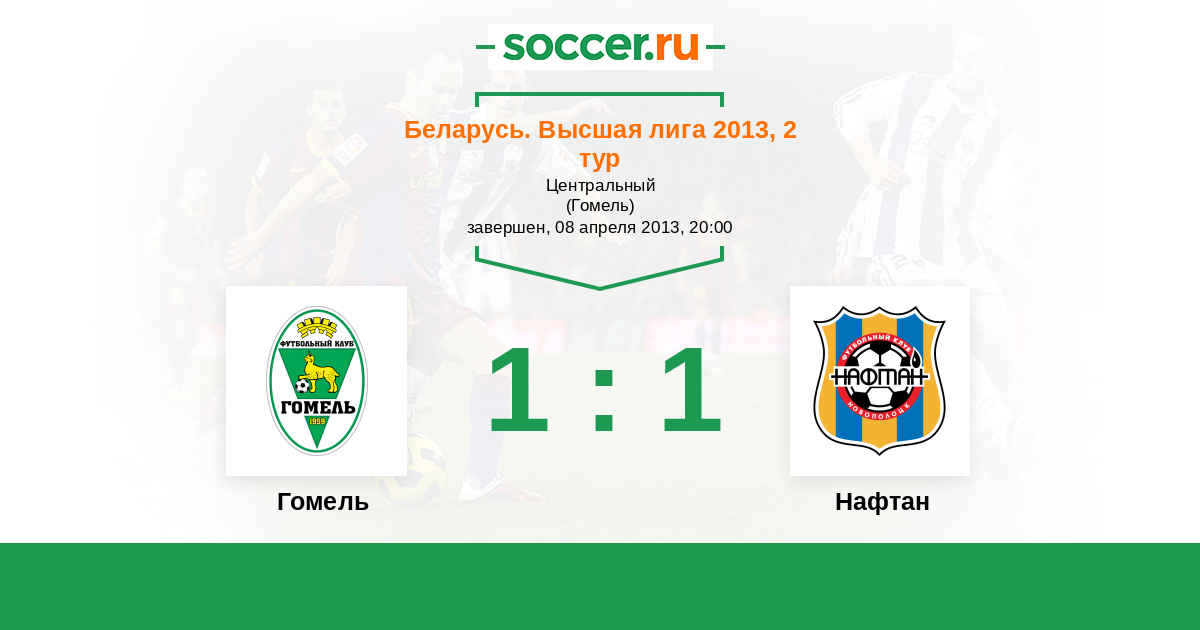 Беларусь. Высшая лига 10.04.2012 Гомель Логотип футбольный клуб Гомель 0:0 Логотип футбольный клуб Нафтан (Новополоцк) Нафтан