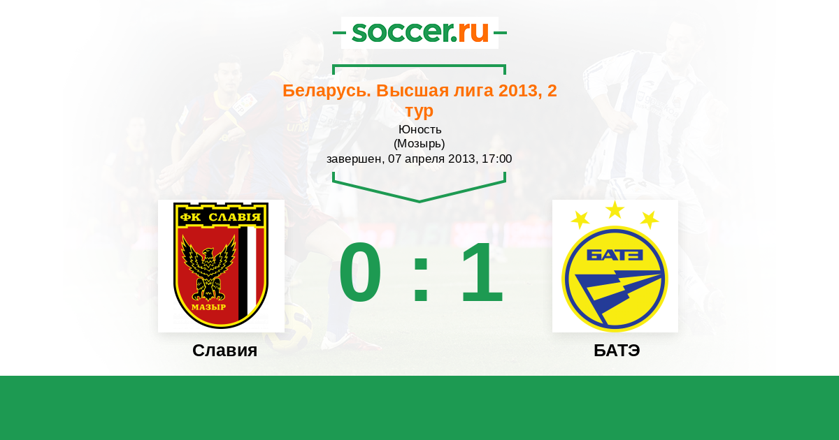 Беларусь. Высшая лига 19.06.2013 БАТЭ Логотип футбольный клуб БАТЭ (Борисов) 6:1 Логотип футбольный клуб Славия (Мозырь) Славия