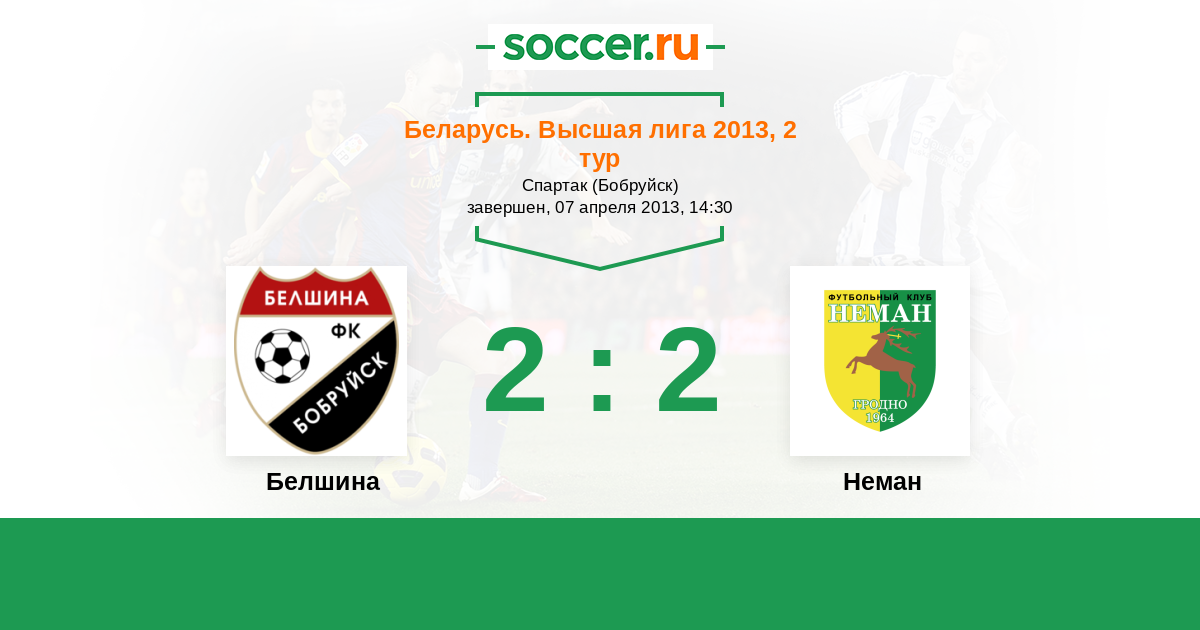 Беларусь. Высшая лига 19.06.2013 Неман Логотип футбольный клуб Неман (Гродно) 2:1 Логотип футбольный клуб Белшина (Бобруйск) Белшина