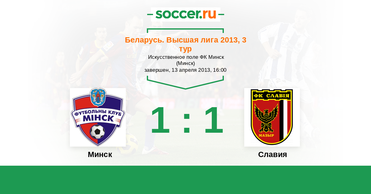 Беларусь. Высшая лига 28.09.2013 Минск Логотип футбольный клуб Минск 1:1 Логотип футбольный клуб Славия (Мозырь) Славия