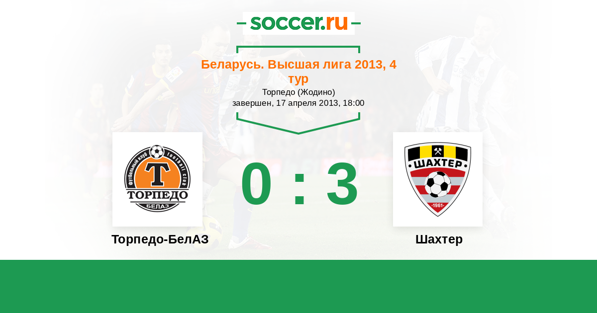 Беларусь. Высшая лига 26.10.2013 Торпедо-БелАЗ Логотип футбольный клуб Торпедо-БелАЗ (Жодино) 1:0 Логотип футбольный клуб Шахтер (Солигорск) Шахтер
