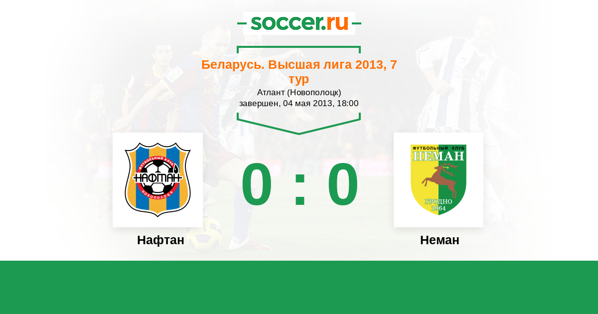 Беларусь. Высшая лига 11.04.2014 Неман Логотип футбольный клуб Неман (Гродно) 0:2 Логотип футбольный клуб Нафтан (Новополоцк) Нафтан