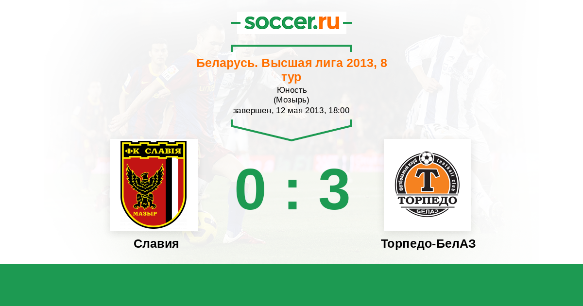 Беларусь. Высшая лига 03.08.2013 Торпедо-БелАЗ Логотип футбольный клуб Торпедо-БелАЗ (Жодино) 0:1 Логотип футбольный клуб Славия (Мозырь) Славия