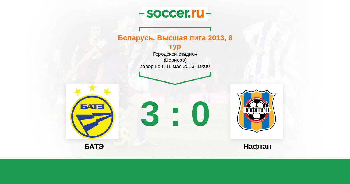 Беларусь. Высшая лига 03.08.2013 Нафтан Логотип футбольный клуб Нафтан (Новополоцк) 1:5 Логотип футбольный клуб БАТЭ (Борисов) БАТЭ