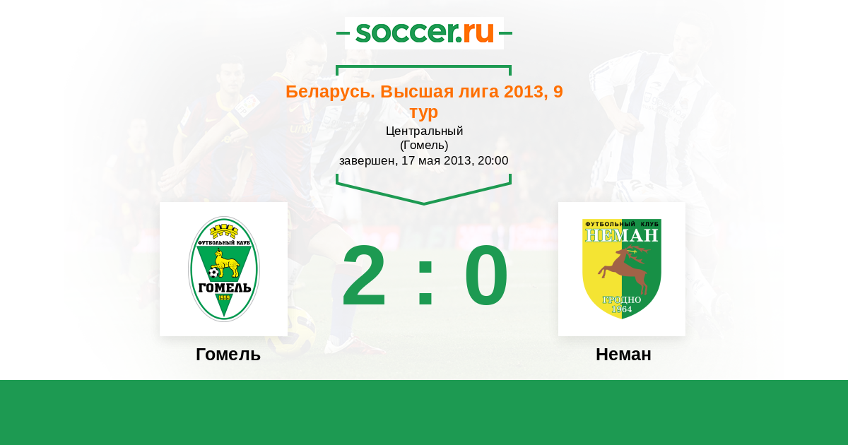 Беларусь. Высшая лига 10.08.2013 Неман Логотип футбольный клуб Неман (Гродно) 2:0 Логотип футбольный клуб Гомель Гомель
