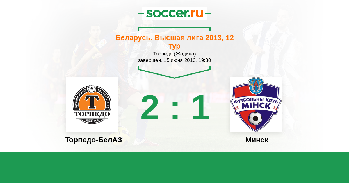 Беларусь. Высшая лига 17.06.2015 Торпедо-БелАЗ Логотип футбольный клуб Торпедо-БелАЗ (Жодино) 2:0 Логотип футбольный клуб Минск Минск