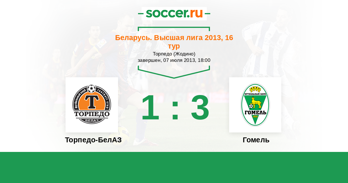 Беларусь. Высшая лига 21.09.2013 Торпедо-БелАЗ Логотип футбольный клуб Торпедо-БелАЗ (Жодино) 2:1 Логотип футбольный клуб Гомель Гомель