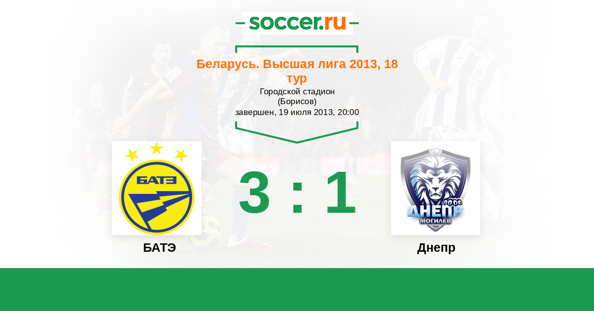 Беларусь. Высшая лига 01.08.2009 Днепр Логотип футбольный клуб Днепр (Могилев) 3:1 Логотип футбольный клуб БАТЭ (Борисов) БАТЭ