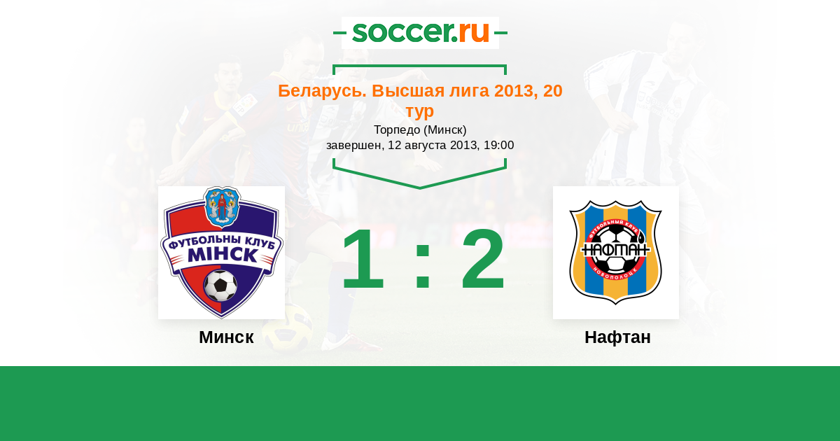 Беларусь. Высшая лига 01.07.2012 Минск Логотип футбольный клуб Минск 1:0 Логотип футбольный клуб Нафтан (Новополоцк) Нафтан