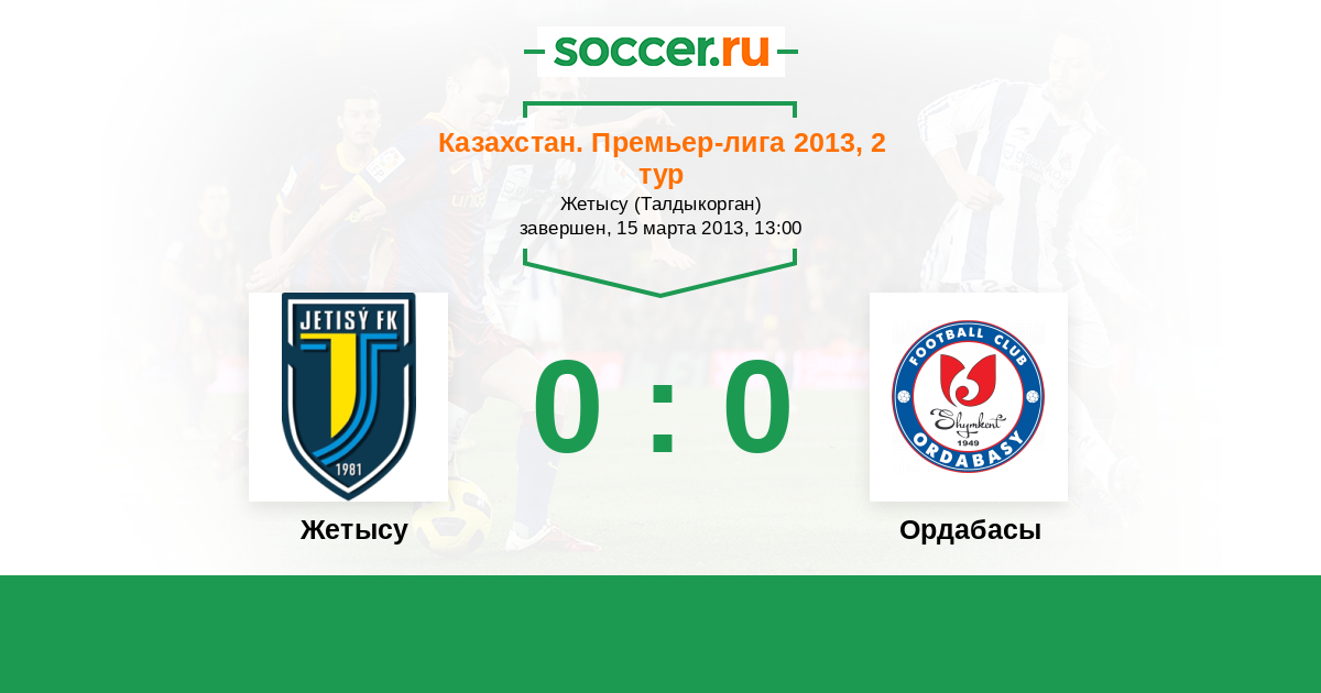 Казахстан. Премьер-лига 14.03.2009 Ордабасы Логотип футбольный клуб Ордабасы (Шымкент) 0:0 Логотип футбольный клуб Жетысу (Талдыкорган) Жетысу