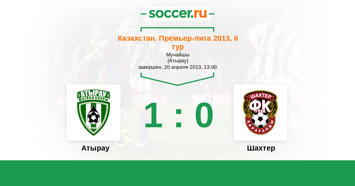 Казахстан. Премьер-лига 23.06.2013 Шахтер Логотип футбольный клуб Шахтер (Караганда) 3:2 Логотип футбольный клуб Атырау Атырау
