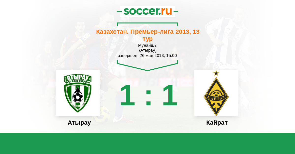 Казахстан. Премьер-лига 01.07.2012 Кайрат Логотип футбольный клуб Кайрат (Алматы) 1:1 Логотип футбольный клуб Атырау Атырау