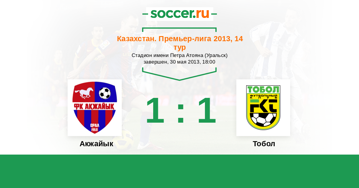 Казахстан. Премьер-лига 06.04.2013 Тобол Логотип футбольный клуб Тобол (Костанай) 1:1 Логотип футбольный клуб Акжайык (Уральск) Акжайык