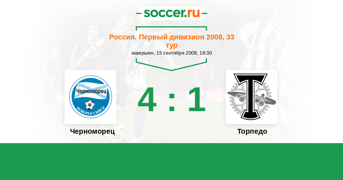 Россия. Первая лига 25.05.2008 Торпедо Логотип футбольный клуб Торпедо (Москва) 0:0 Логотип футбольный клуб Черноморец (Новороссийск) Черноморец