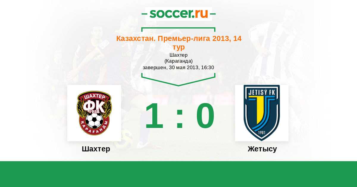 Казахстан. Премьер-лига 14.06.2014 Шахтер Логотип футбольный клуб Шахтер (Караганда) 3:0 Логотип футбольный клуб Жетысу (Талдыкорган) Жетысу