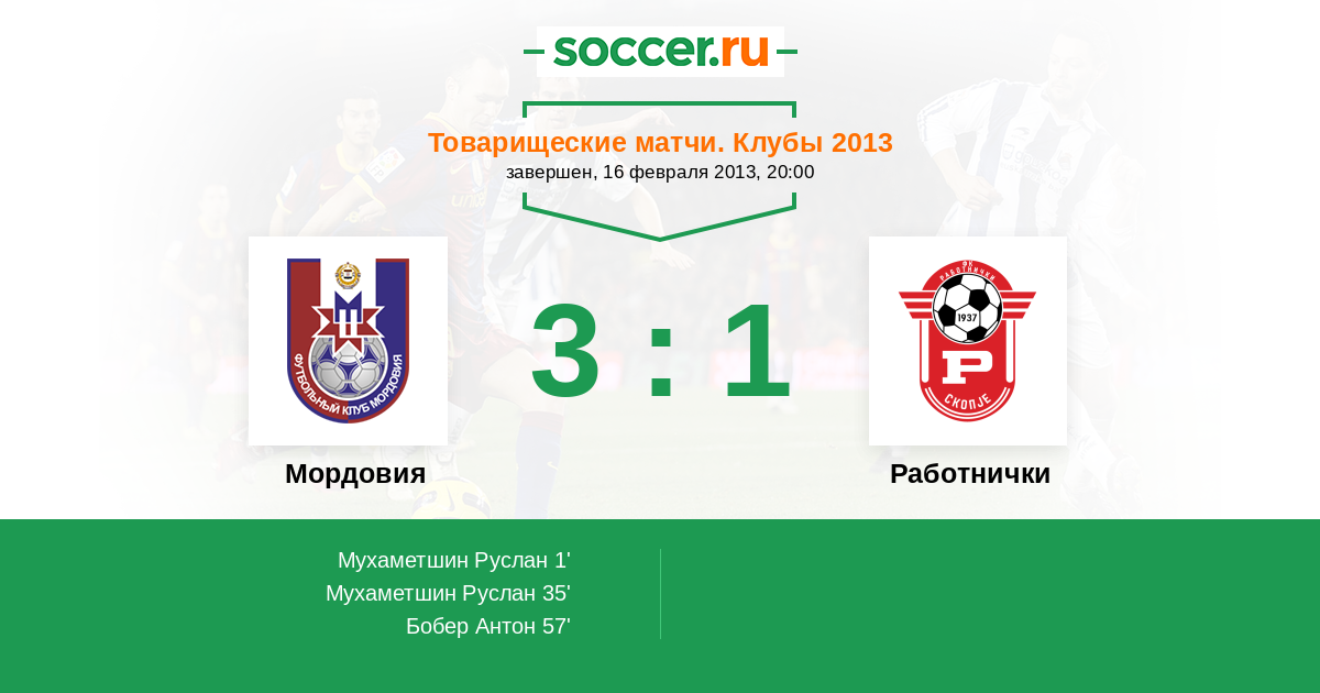 Протокол матча Мордовия против Работнички