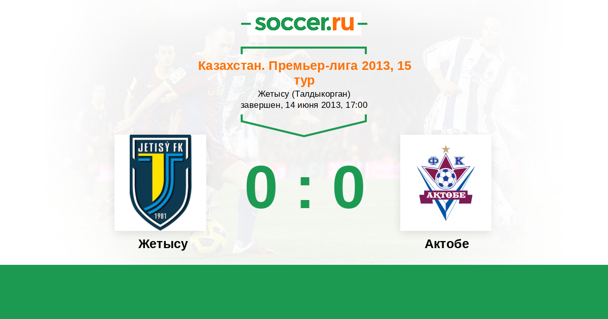 Казахстан. Премьер-лига 01.06.2014 Жетысу Логотип футбольный клуб Жетысу (Талдыкорган) 1:0 Логотип футбольный клуб Актобе Актобе