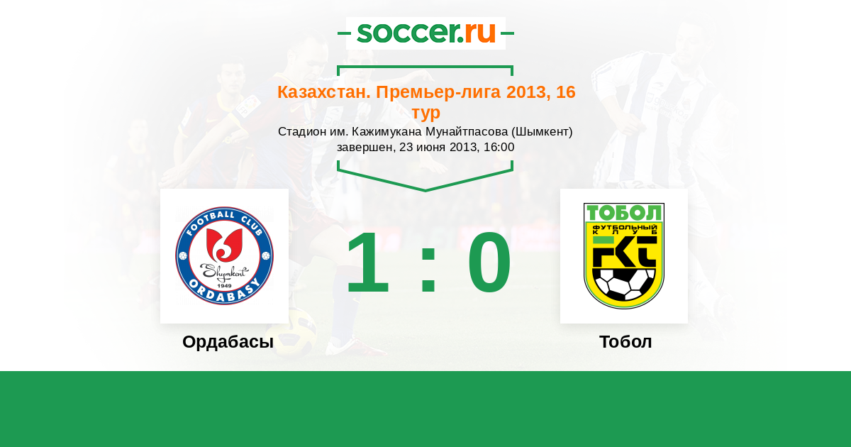Казахстан. Премьер-лига 02.06.2016 Тобол Логотип футбольный клуб Тобол (Костанай) 1:0 Логотип футбольный клуб Ордабасы (Шымкент) Ордабасы