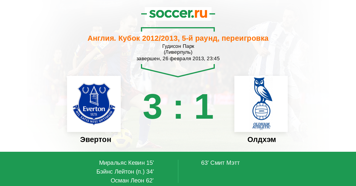 Протокол матча Эвертон против Олдхэм