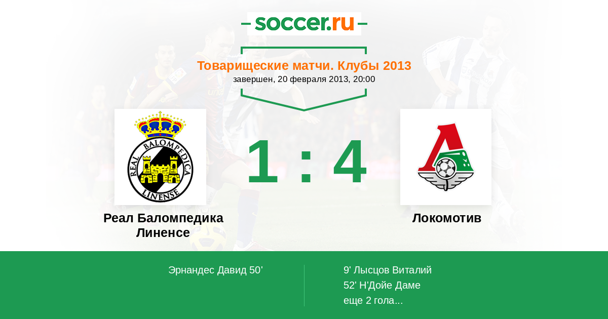 Протокол матча Реал Баломпедика Линенсе против Локомотив