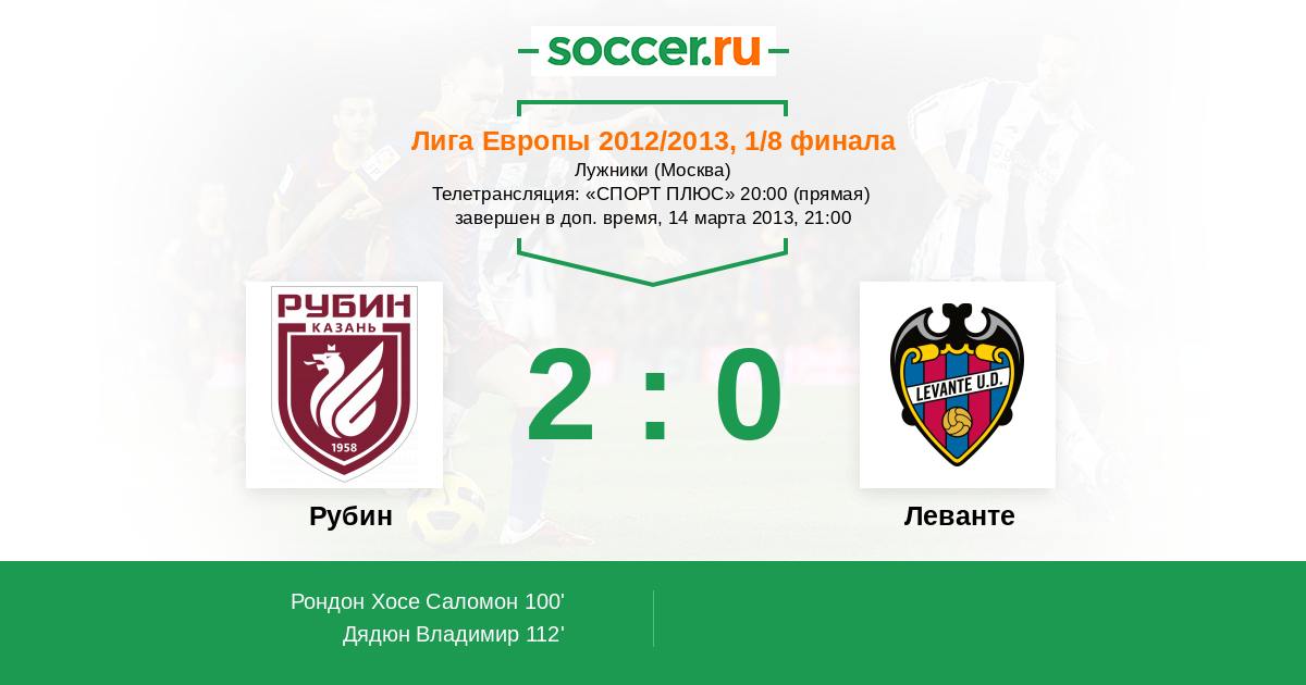 Протокол матча Рубин против Леванте