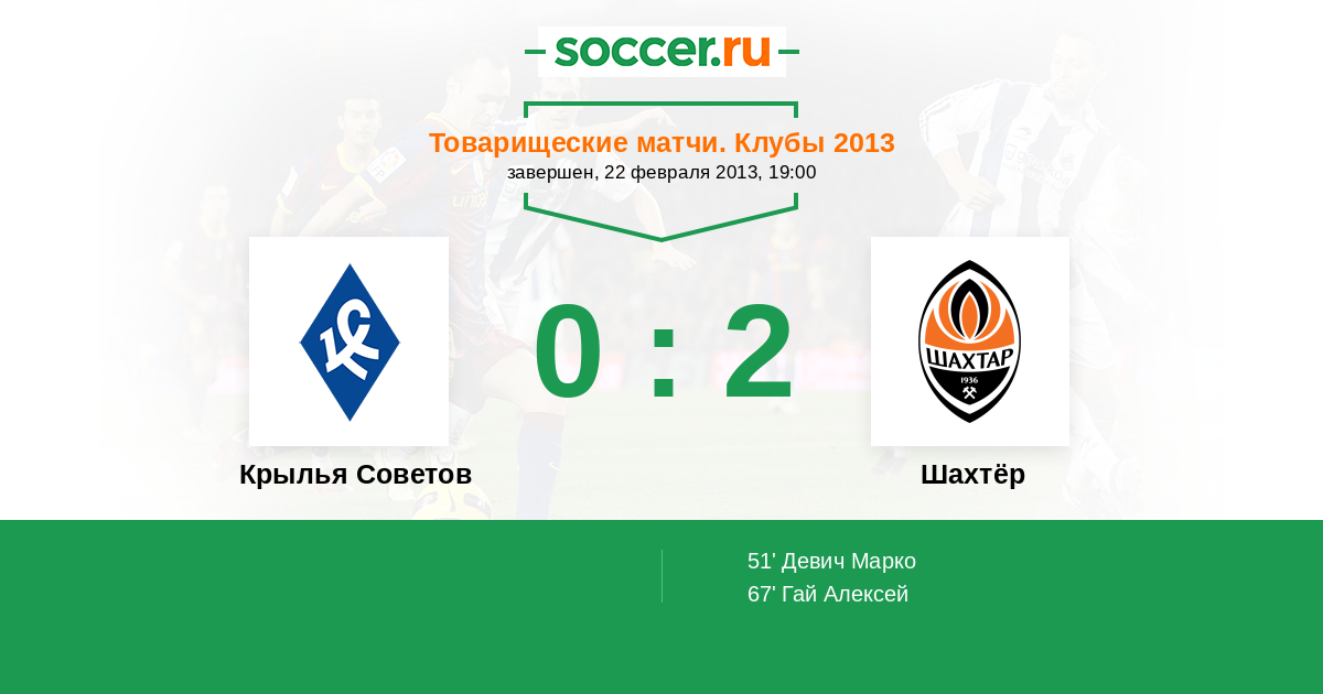 Протокол матча Крылья Советов против Шахтёр
