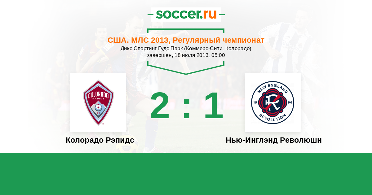 США. МЛС 24.07.2011 Колорадо Рэпидс Логотип футбольный клуб Колорадо Рэпидс (Денвер) 2:2 Логотип футбольный клуб Нью-Инглэнд Революшн (Фоксборо) Нью-Инглэнд Революшн