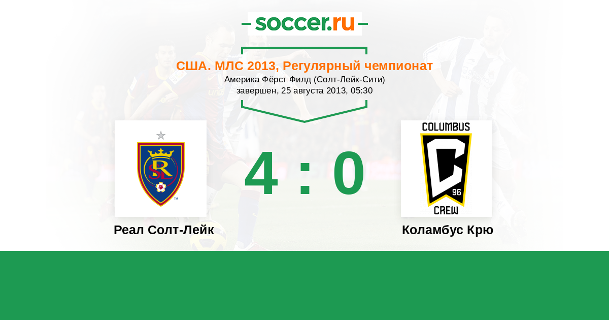 США. МЛС 01.07.2012 Коламбус Крю Логотип футбольный клуб Коламбус Крю 2:0 Логотип футбольный клуб Реал Солт-Лейк (Солт-Лейк-Сити) Реал Солт-Лейк