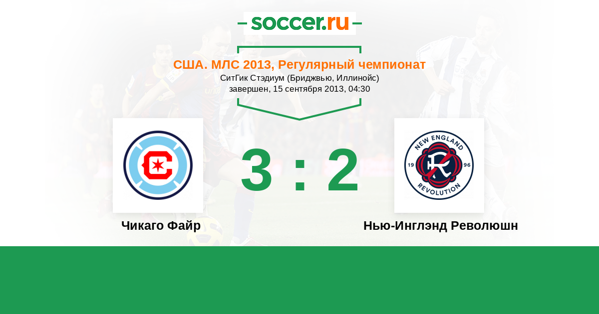 История матча Чикаго Файр против Нью-Инглэнд Революшн