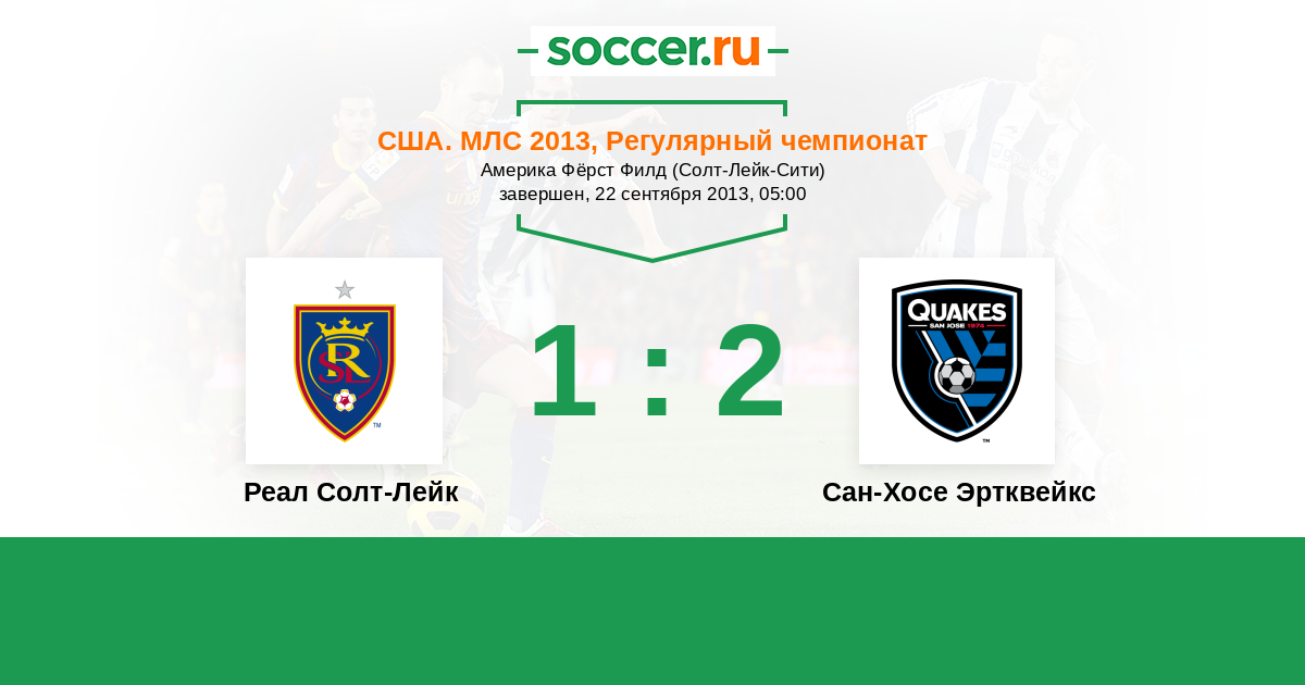США. МЛС 02.06.2013 Реал Солт-Лейк Логотип футбольный клуб Реал Солт-Лейк (Солт-Лейк-Сити) 3:0 Логотип футбольный клуб Сан-Хосе Эртквейкс Сан-Хосе Эртквейкс