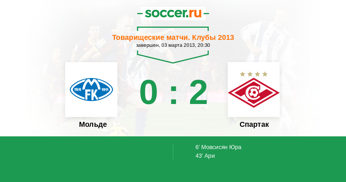 Протокол матча Мольде против Спартак