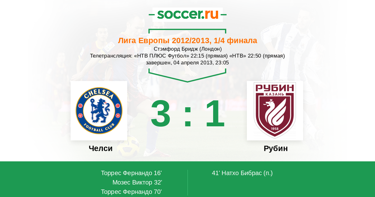 Протокол матча Челси против Рубин